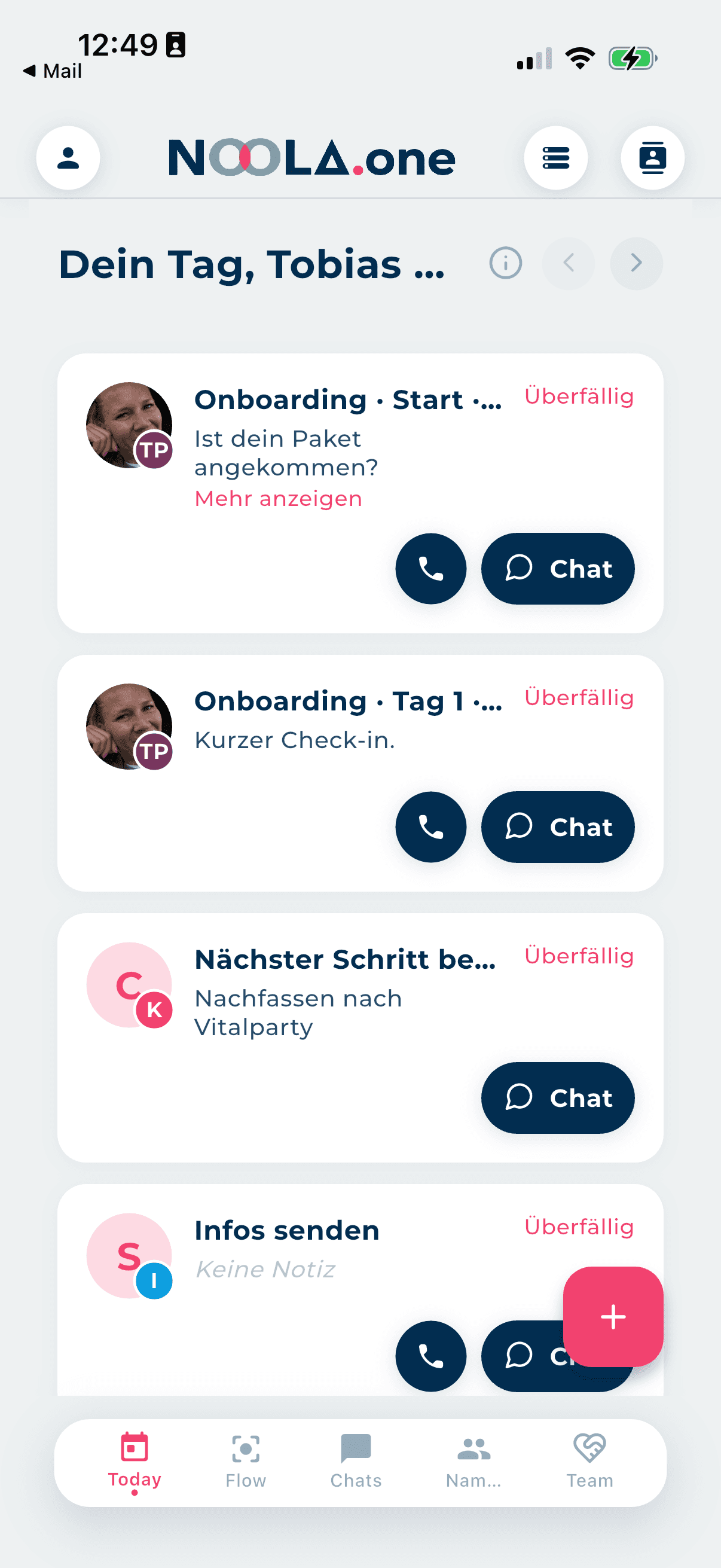 NOOLA ist mehr als eine digitale Ablage oder eine einfache To-do-App. Es ist ein System, das dich im Business-Alltag aktiv führt: Kontakte, Follow-ups, Aufgaben und nächste Schritte werden nicht nur gesammelt, sondern strukturiert geplant und im richtigen Moment sichtbar gemacht. Je nach Situation – ob Interessent, Kunde oder Teampartner – unterstützt dich NOOLA dabei, individuell den Überblick zu behalten und sinnvoll weiterzuarbeiten.